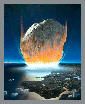 The Cretaceous-Tertiary extinction event that exterminated the dinosaurs was the result of an immense asteroid hitting the Earth. The impact threw millions of tons of dust and moisture into the atmosphere when the asteroid struck the Yucatan Peninsula. It reduced the amount of sunlight reaching the earth and decreasing temperatures all over the world became commonplace.