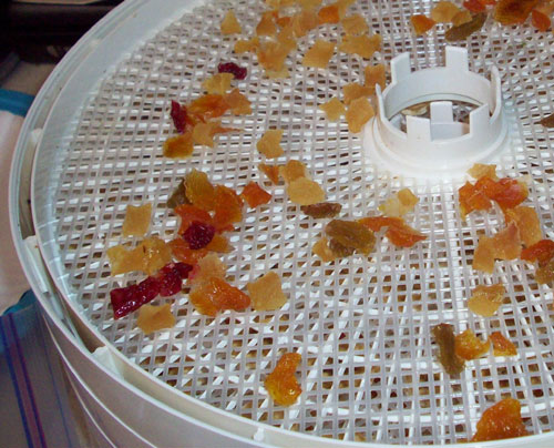 Lay the trays out in the sun, turning occasionally to ensure proper drying. It is best to place the trays onto supports and not directly on the ground. It will take 2 to 4 days for most fruits to complete the process and it is best to take the trays inside at night or when it rains.
